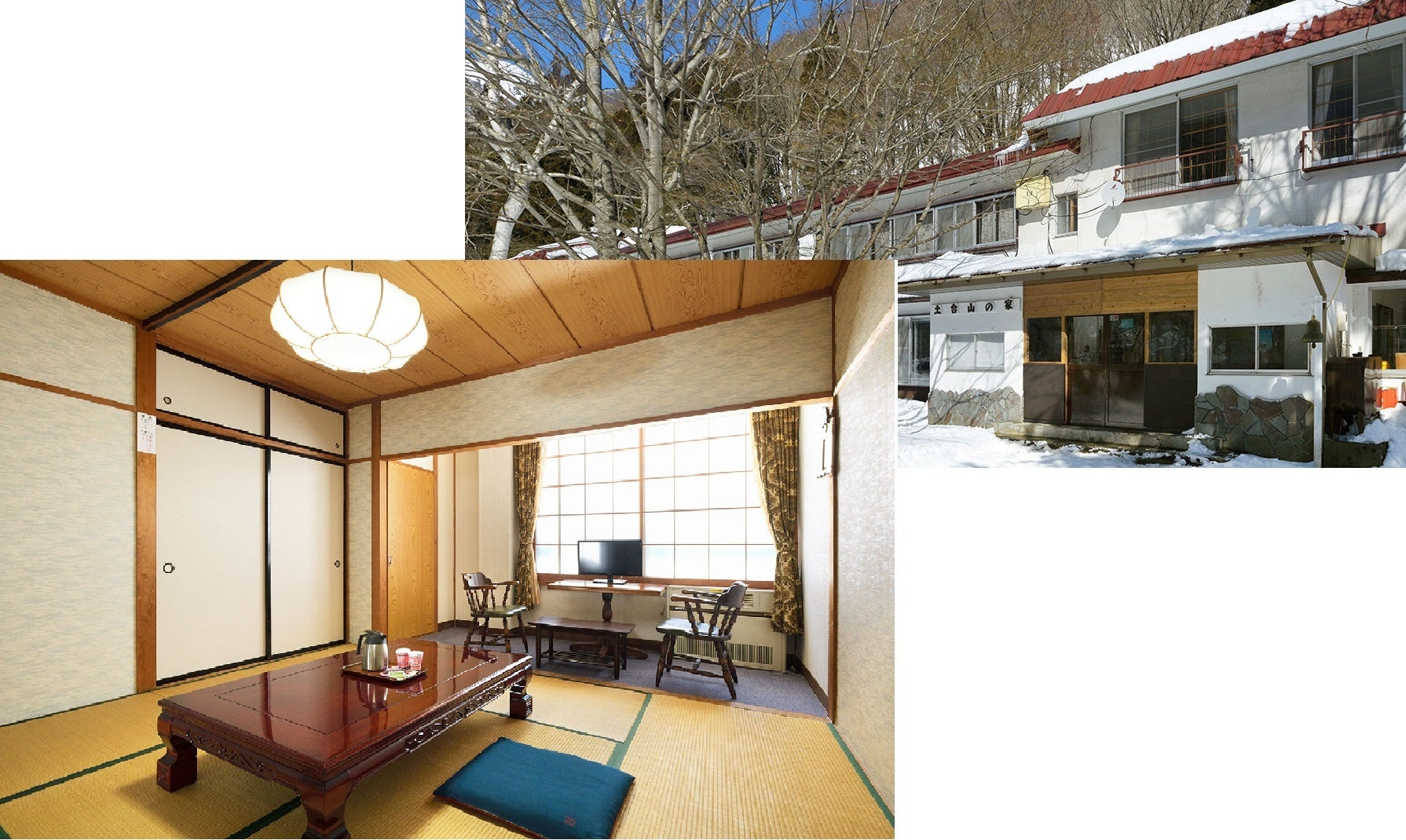 ・宿泊:①「土合山の家」和室 ②「ホテルサンバード」和室