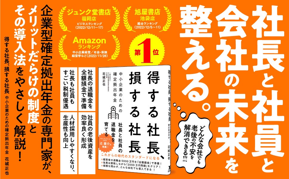発売直後に、書店とAmazonで売上1位を獲得! 最低限のコストで「社長と社員の十分な退職金」を準備する方法を解説した書籍『得する社長、損する社長 中小企業のための確定拠出年金』発売中!