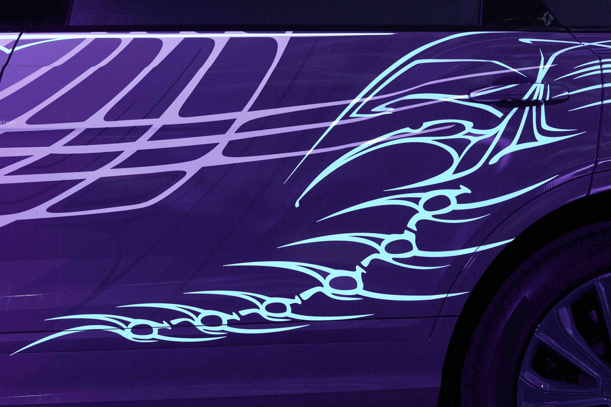 このシームレスなデザインの移り変わりは、ベントレーでのドライブによって生まれる旅への満足感を見事に表現しています。また、バンバン氏のおかげで、ベントレーのパフォーマンスを追求したスピードレンジを連想させる、ダイナミックで力強いエネルギーがこの車両から感じることができます。発表時にはブラックライトが照射されると、パフォーマンスの力強さを象徴するダイナミックなアートワークが鮮やかに浮かび上がりました。このアートワークは、ベントレーの洗練されたデザインと見事に調和し、静けさとダイナミックの絶妙なバランスを表現しています。この一台は、ベントレーの未来を切り開く革新の基盤を築きました。