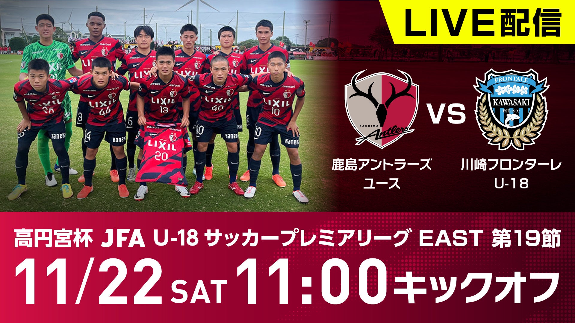11月22日(土)にメルカリスタジアムで開催される高円宮杯 JFA U-18サッカープレミアリーグ 2025 EAST 第18節 鹿島アントラーズユース vs 川崎フロンターレU-18を、クラブ公式YouTubeチャンネルにてライブ配信しますので、お知らせいたします。