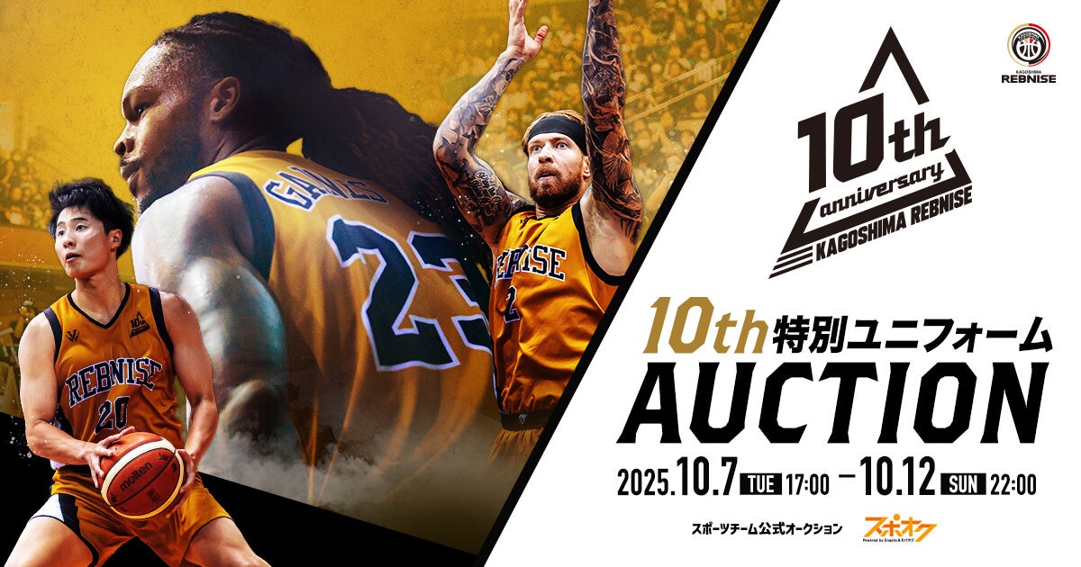 株式会社モバオク(本社:東京都渋谷区、代表取締役社長:小一原 宏樹、以下モバオク)がエンゲート株式会社(本社:東京都中央区、代表取締役:城⼾ 幸⼀郎、以下エンゲート)と業務提携し提供するスポーツチーム公式オークションサービス「スポオク」にて、B.LEAGUE所属の鹿児島レブナイズは2025年10月7日(火)より『鹿児島レブナイズ10th特別ユニフォームオークション』を開始します。