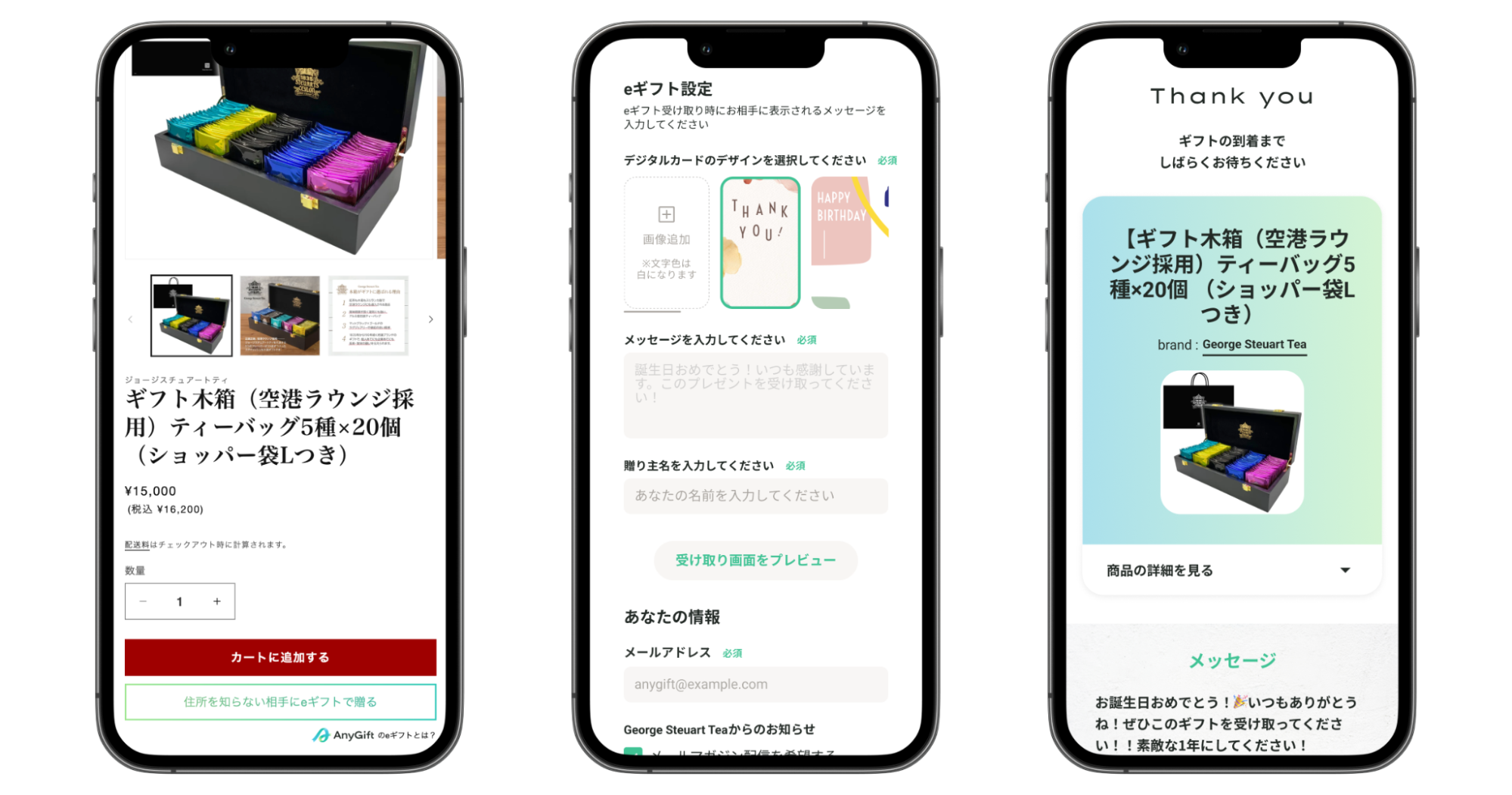 AnyReach株式会社(本社:東京都港区、代表取締役:中島 功之祐)は、株式会社味とサイエンス(本社所在地:東京都中央区、代表取締役社長:藤本 飛呂)が展開する「George Steuart Tea公式通販」にeギフトサービス『AnyGift(エニーギフト)』の提供を開始しました。