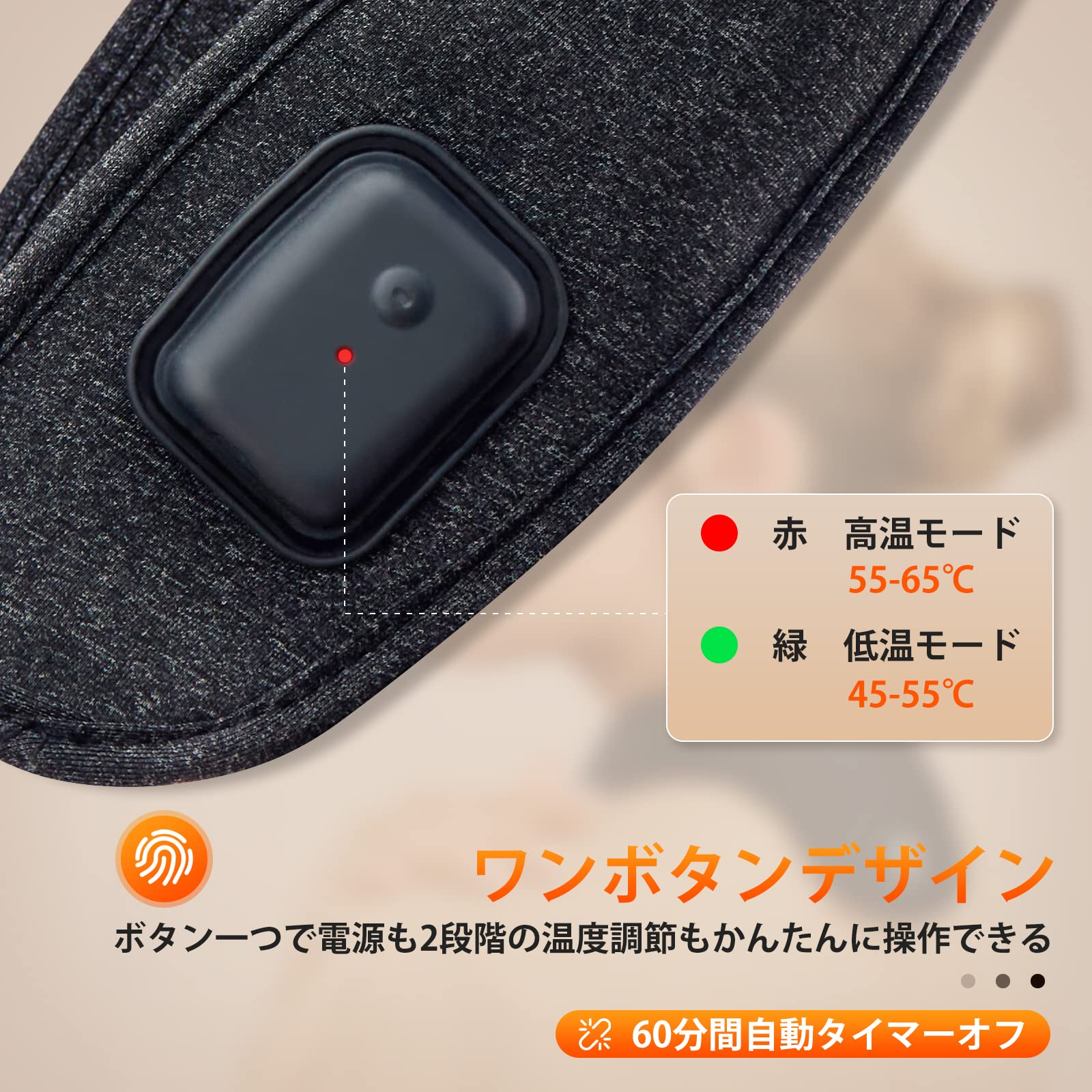 自分のニーズに合わせてワンボタンで「高温」と「低温」の2種類の温度モードを切り替えます。使用後5分たつと首がじんわりとぽかぽかになります。また、60分経つと自動で電源OFFになるタイマー付きなので、睡眠前にもピッタリ!消し忘れる心配もなく、首をリラックスさせてぐっすり快眠できます。