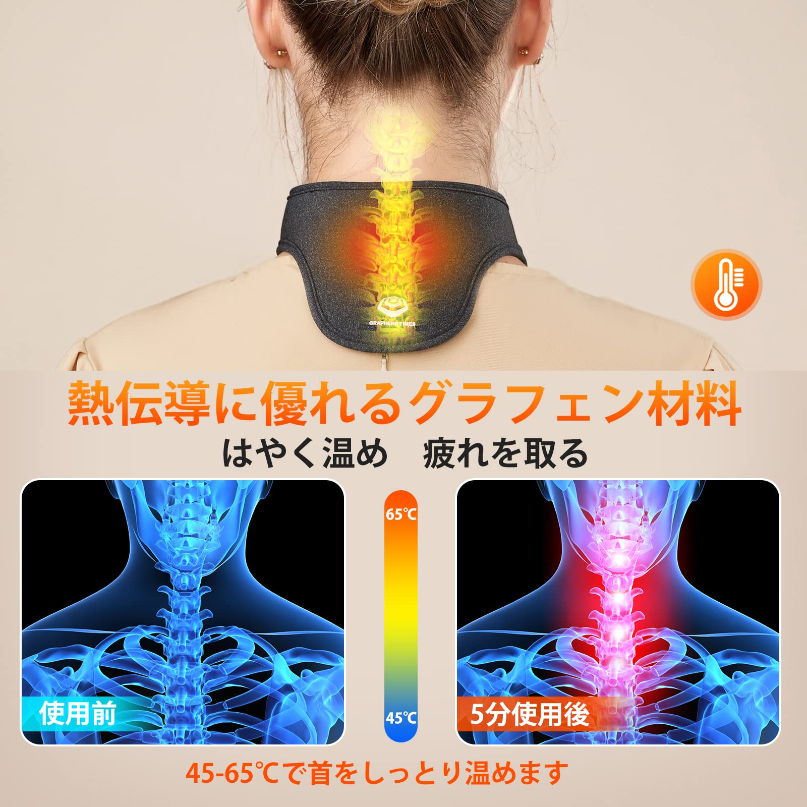 熱伝導に優れるグラフェン材料を採用し、最急速加熱を実現、保温性にとても優れたグラフェン首サポーターです。スイッチを入れるとグラフェン発熱膜が急速加熱して、首を温めながらのリラックスしていただけます。