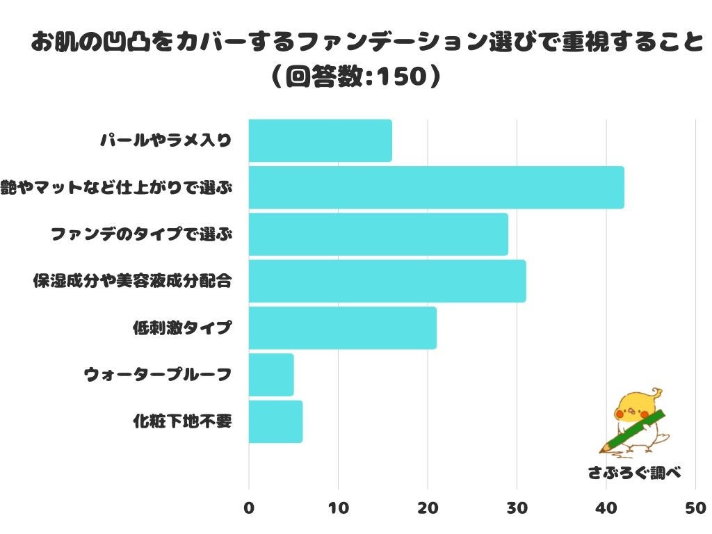 【調査レポート】お肌の凹凸をカバーするファンデーション選びで重視することは?1位は「艶やマットなど仕上がりで選ぶ」でした!