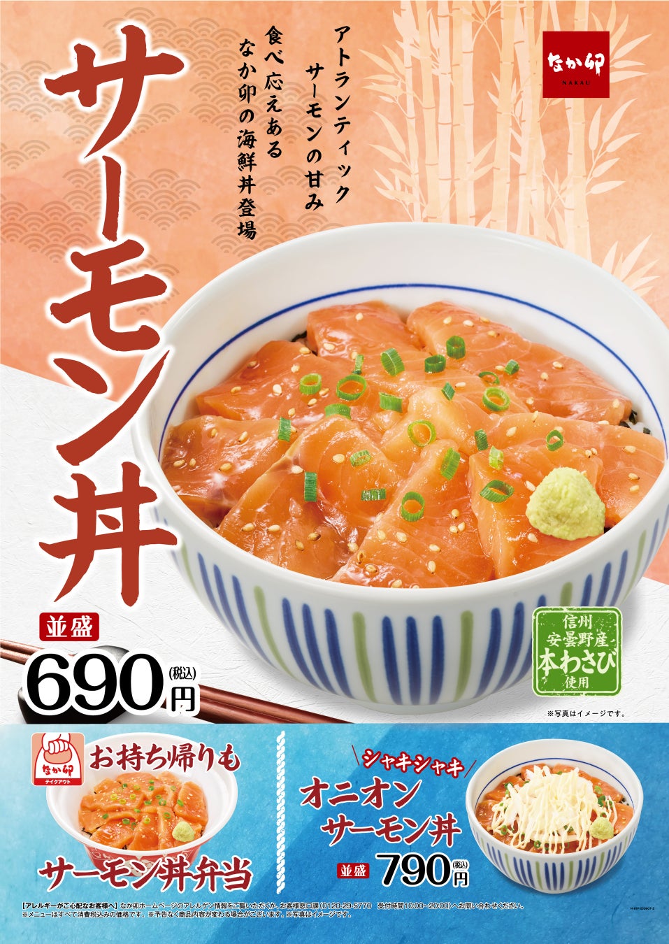 【なか卯】~食べ応え抜群!サーモンの上品な甘みを味わう~なか卯に「サーモン丼」が登場!