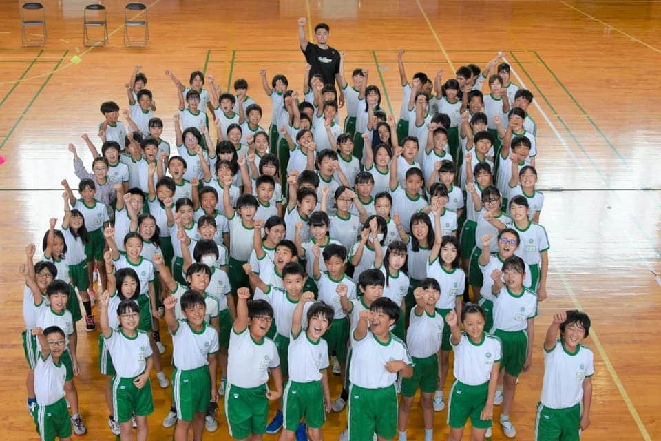 7月7日(金)、#18 角野亮伍選手が刈谷市の日高小学校を訪問し、小学6年生112名に講演および授業参加を行いました。