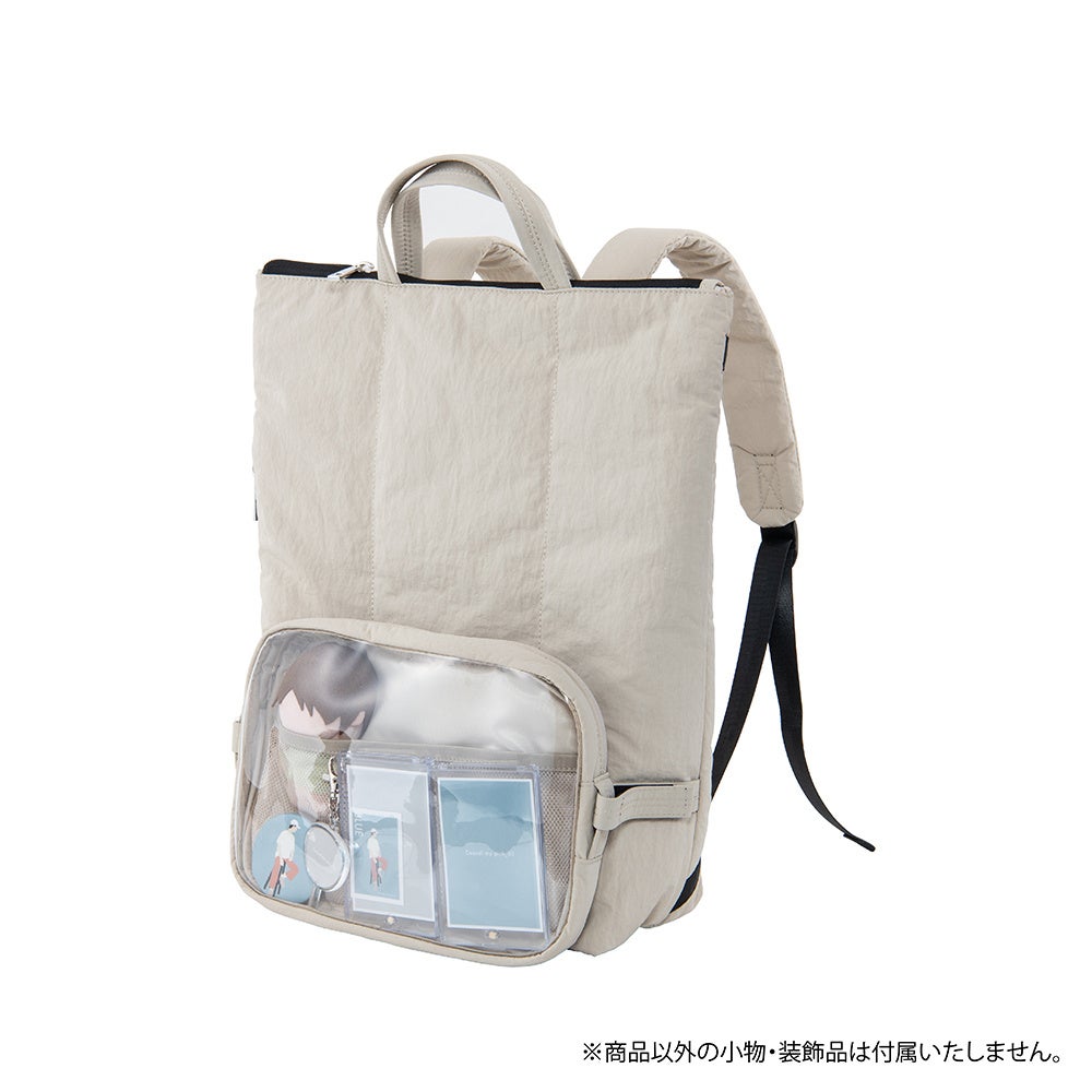 透明ポケット面をくるっと裏返すことで、生地面のシンプルなバックパックに擬態。通勤・通学などのシーンにも自然に溶け込みます。その日の気分やシーンに合わせて、“見せる”も“隠す”も自由自在。日常と推し活を両立できます。カラーはブラックとライトベージュの2色展開です。