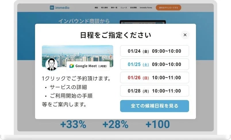 immedioは「未来をつくる出会いをふやす」をミッションに、決まる商談が増える 有効商談オートメーションツール「immedio」を提供しています。