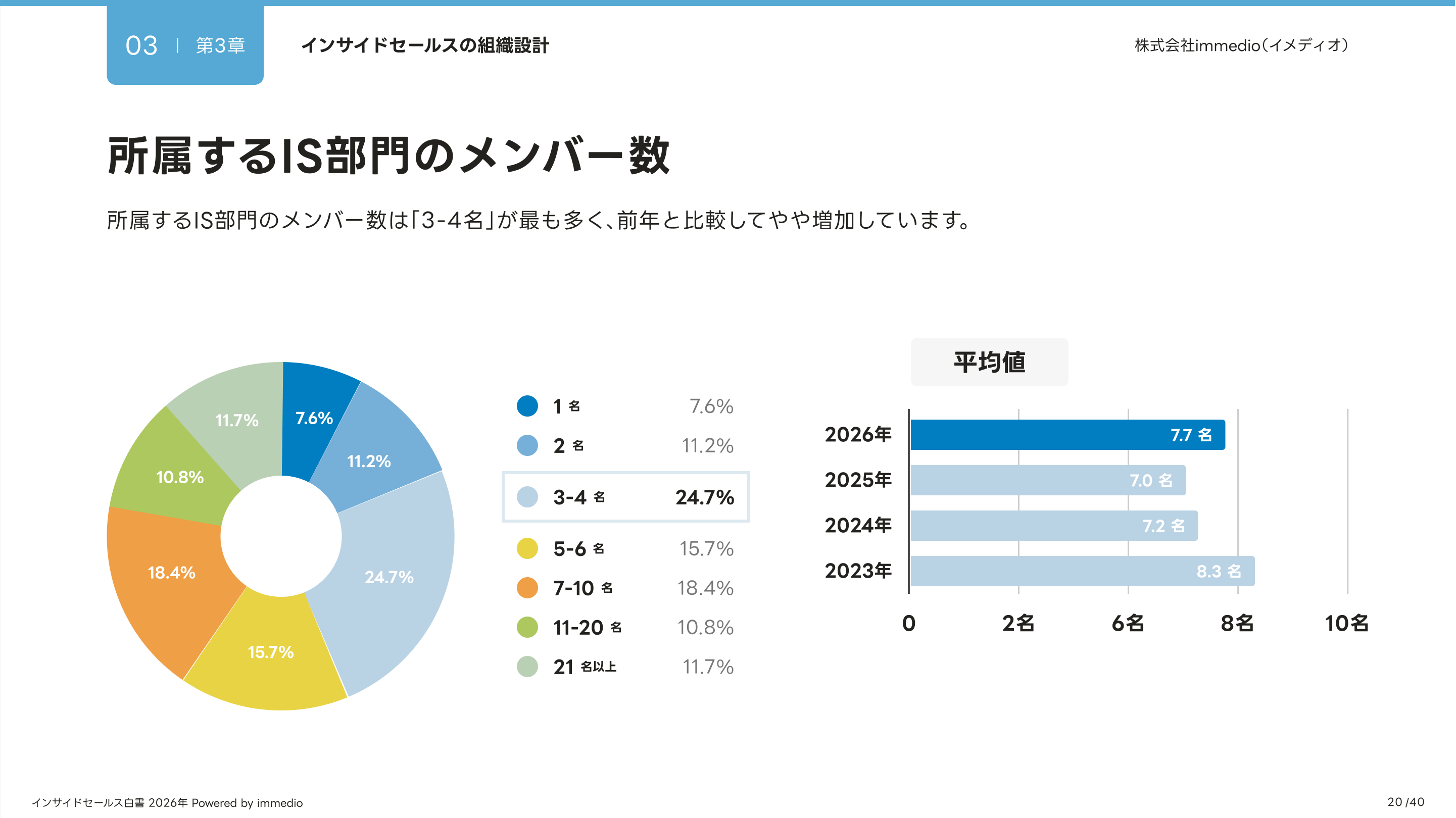 IS部門のメンバー数は平均7.7名、社会人経験も平均11.4年と2025年に比べ、増加。