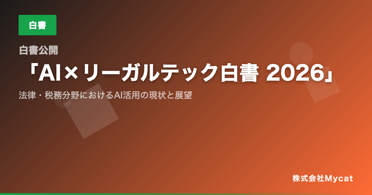 株式会社Mycat(本社:東京都目黒区)は、法律・税務分野におけるAI活用の現状と展望をまとめた「AI×リーガルテック白書 2026」を無料公開いたします。