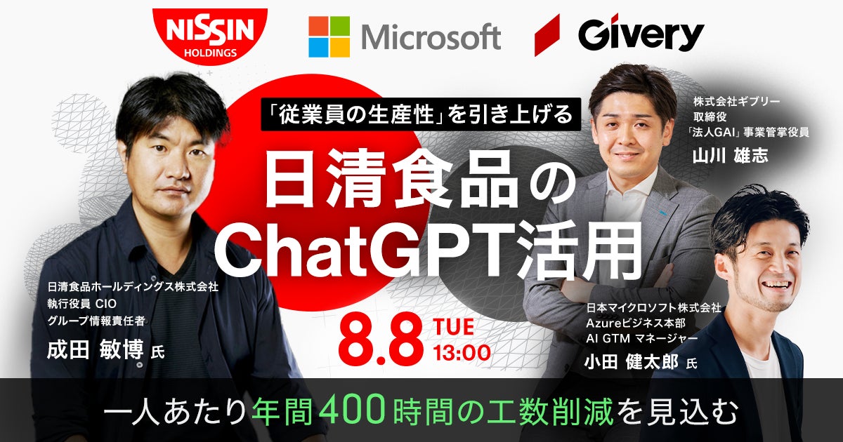 【日清食品HD CIO、日本Microsoft社登壇オンラインセミナー】営業担当者1人あたり年間400時間の工数削減を見込む日清食品のChatGPT活用の裏側を公開