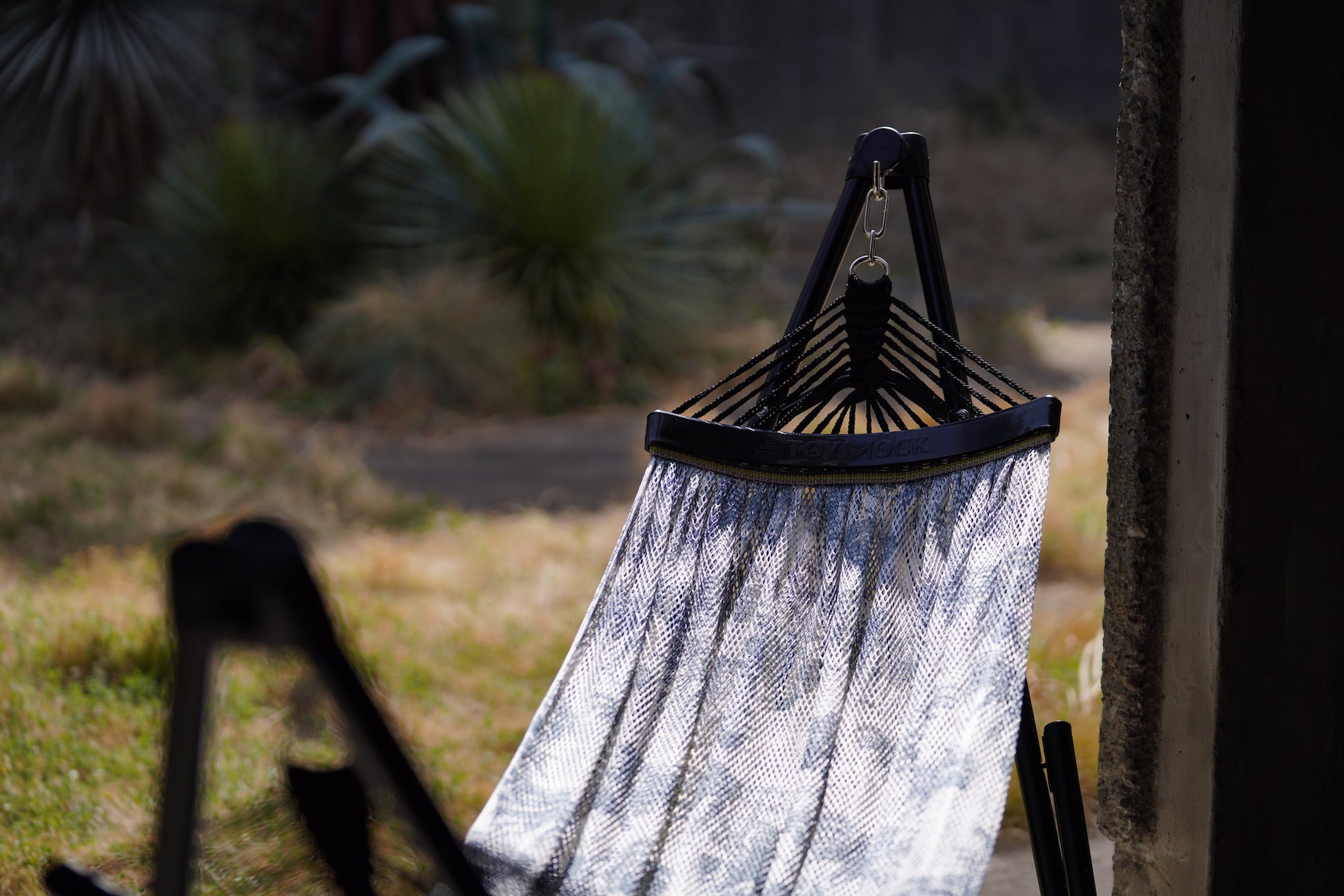 インテリアとしても密かな人気を集める自立式ポータブルハンモック。