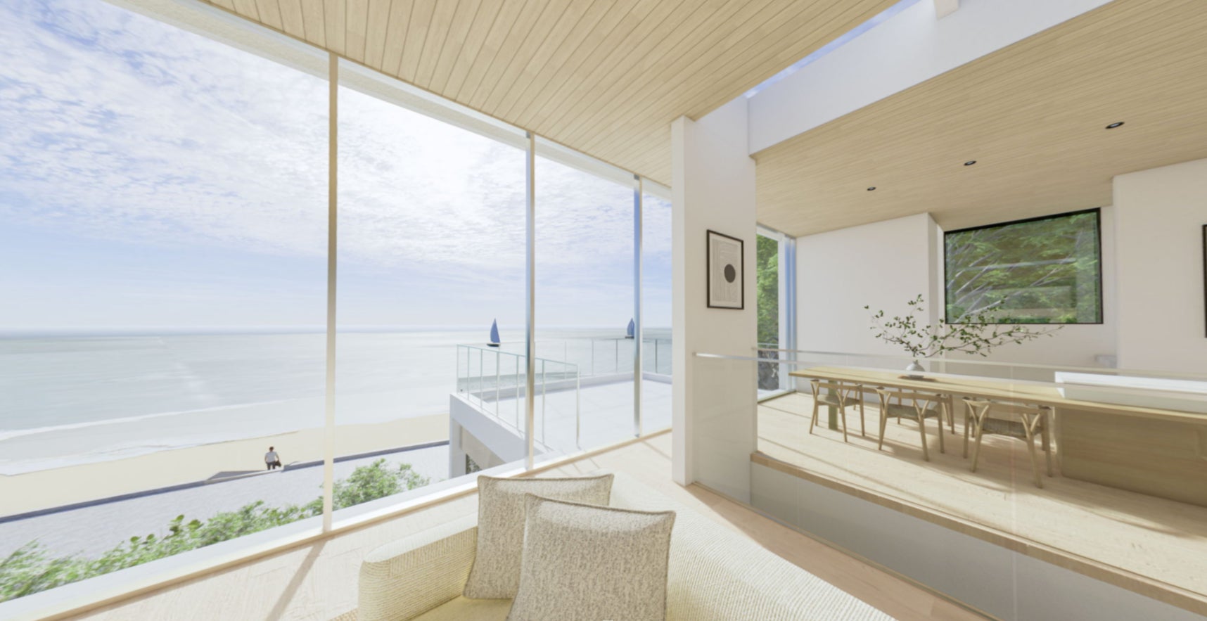 海辺の自然豊かな街をイメージしたバーチャル空間に、プレミアムパートナー(※1)が設計した7邸を配置。各邸宅には設計情報や工務店のURLがリンクされており、気になる住宅についてさらに詳しい情報を確認したり、相談が可能です。