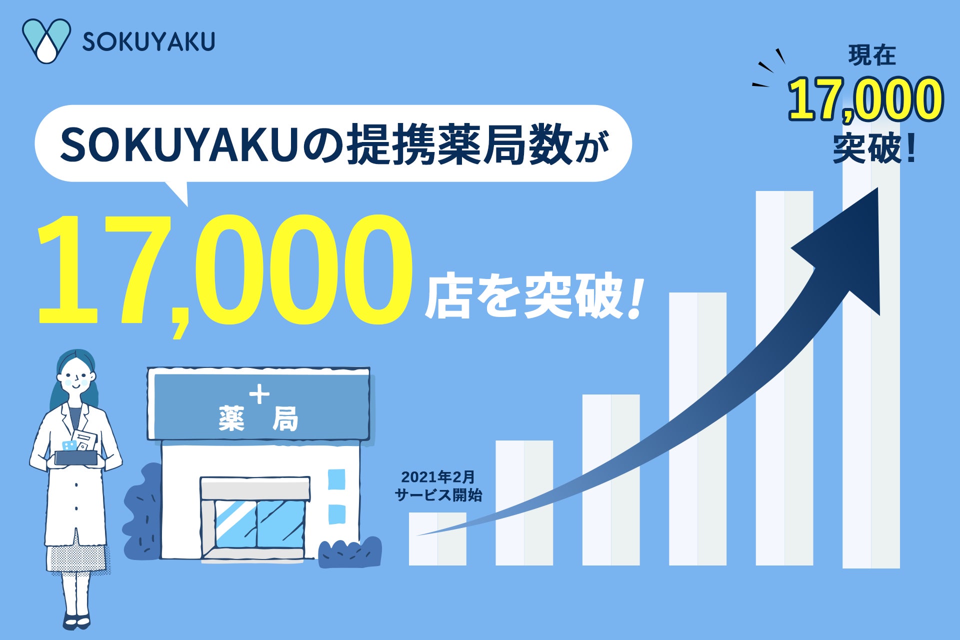 ジェイフロンティア株式会社(本社:東京都渋谷区、代表取締役社長執行役員:中村篤弘、以下「当社」)は、当社が提供するオンライン診療・服薬指導・処方薬配送サービス「SOKUYAKU(ソクヤク)」の提携薬局数が17,000店を突破したことをお知らせいたします。