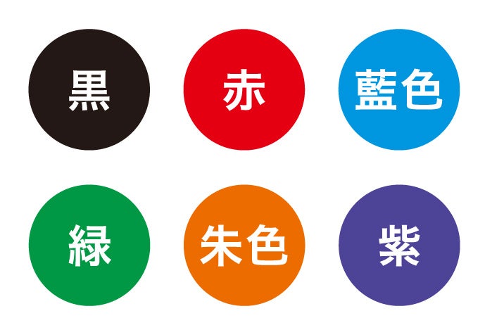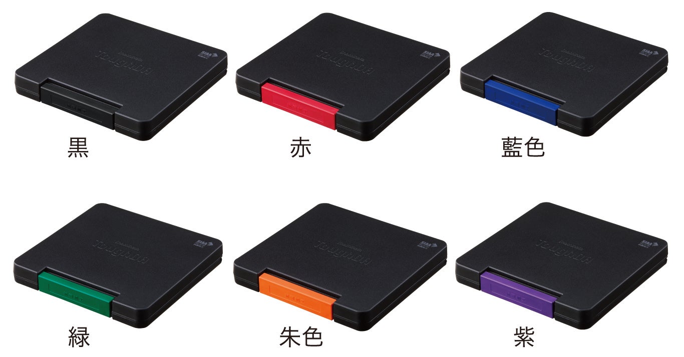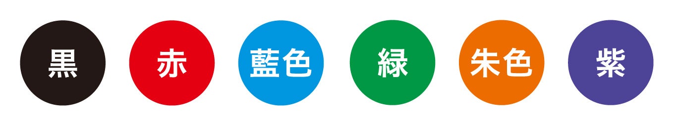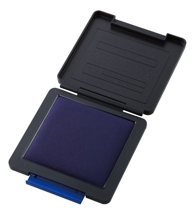 大きな丸型や角型のゴム印もキレイに押せる、100×100㎜の盤面サイズです。インキも黒・赤・藍色・緑・朱色・紫の6色をご用意しました。
