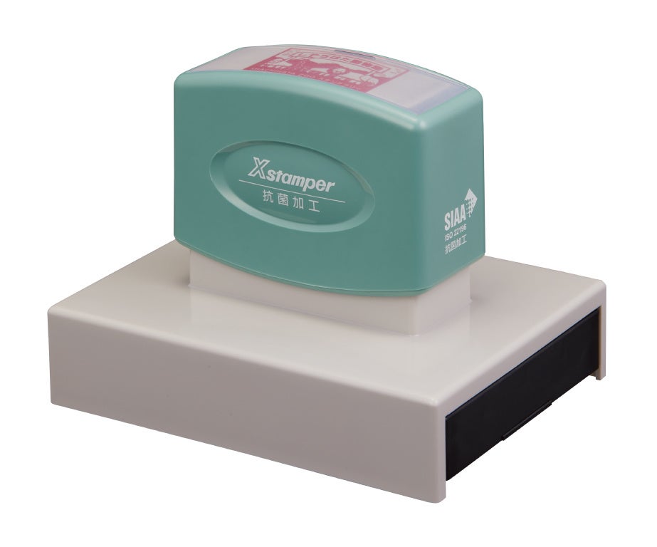 「角型印65100号 抗菌」は、駅や空港、テーマパーク、観光名所など、場所に合わせて印面をデザインできるインキ内蔵式のスタンパーです。今回、グリップ部分を抗菌加工した仕様で新たに発売します。●商品イメージ