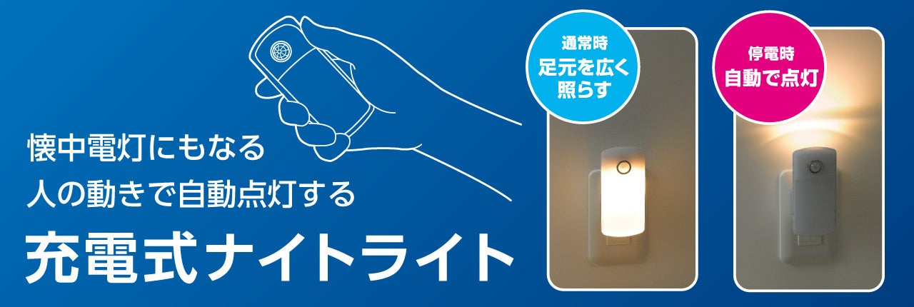 懐中電灯にもなる人の動きで自動点灯する足元灯(ナイトライト)充電式人感明暗ナイトライトを発売!