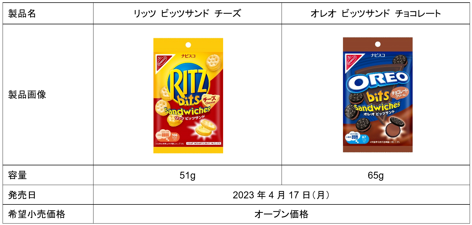 モンデリーズ・ジャパン株式会社(本社:東京都品川区/代表取締役社長:碇祐輔)は、クラッカーブランド「リッツ」から「リッツ ビッツサンド チーズ」を、ビスケットブランド「オレオ」から「オレオ ビッツサンド チョコレート」を、全国で2023年4月17日(月)より同時発売します。
