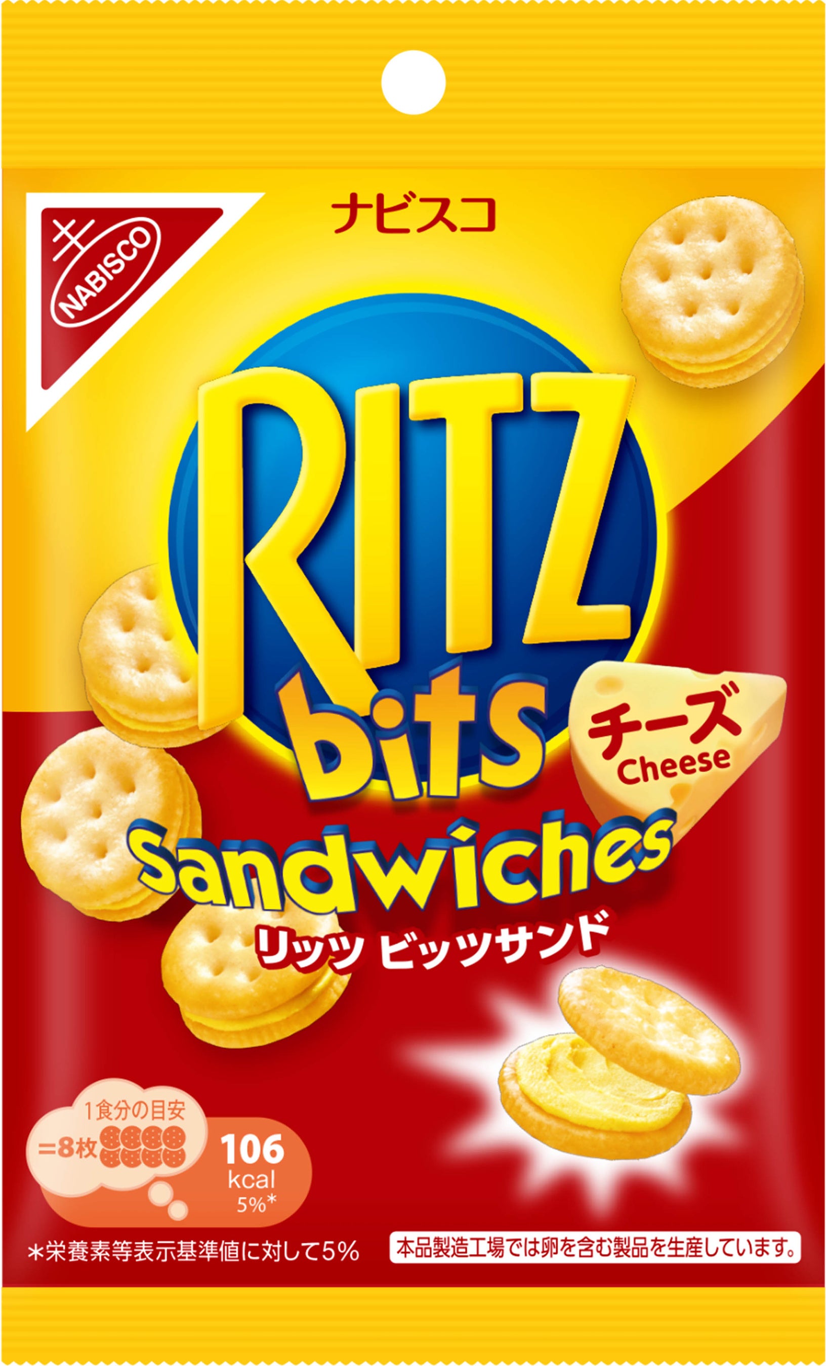 サクサクとした食感とほどよい塩味が特徴で、どんな具材とも相性抜群のクラッカー「リッツ」は、1971年に日本で発売されて以来、多くの方々に親しまれている、国内売上No.1*のクラッカーブランドです。これまで多くのお客様に「ひと口サイズが欲しい」などのお声をいただいたことから、今回「リッツ ビッツサンド チーズ」の発売に至りました。香ばしい風味、ほどよい塩味のクラッカーとまろやかなチーズクリームが絶妙なコンビネーションです。小腹満たしはもちろん、お酒のお供にもおすすめ。パクパクとついつい食べ進んでやみつきになりそうな味わいをどうぞお楽しみください。
