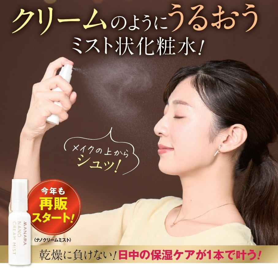 大人気マナラ〈ホットクレンジングゲル〉をはじめとした、オリジナル化粧品ブランド「マナラ」 「アールオム」「アクナル」を開発・販売する株式会社ランクアップ(本社・銀座、代表・岩崎裕美子)は、マナラ<ナノクリームミスト>を、数量限定11,000本で、2024年9月2日(月)から再販を致します。