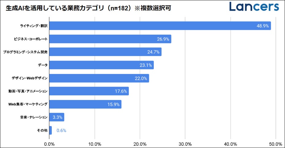 ランサーズ、「生成AI業務活用実態調査」を公開。約8割が業務効率化を実感