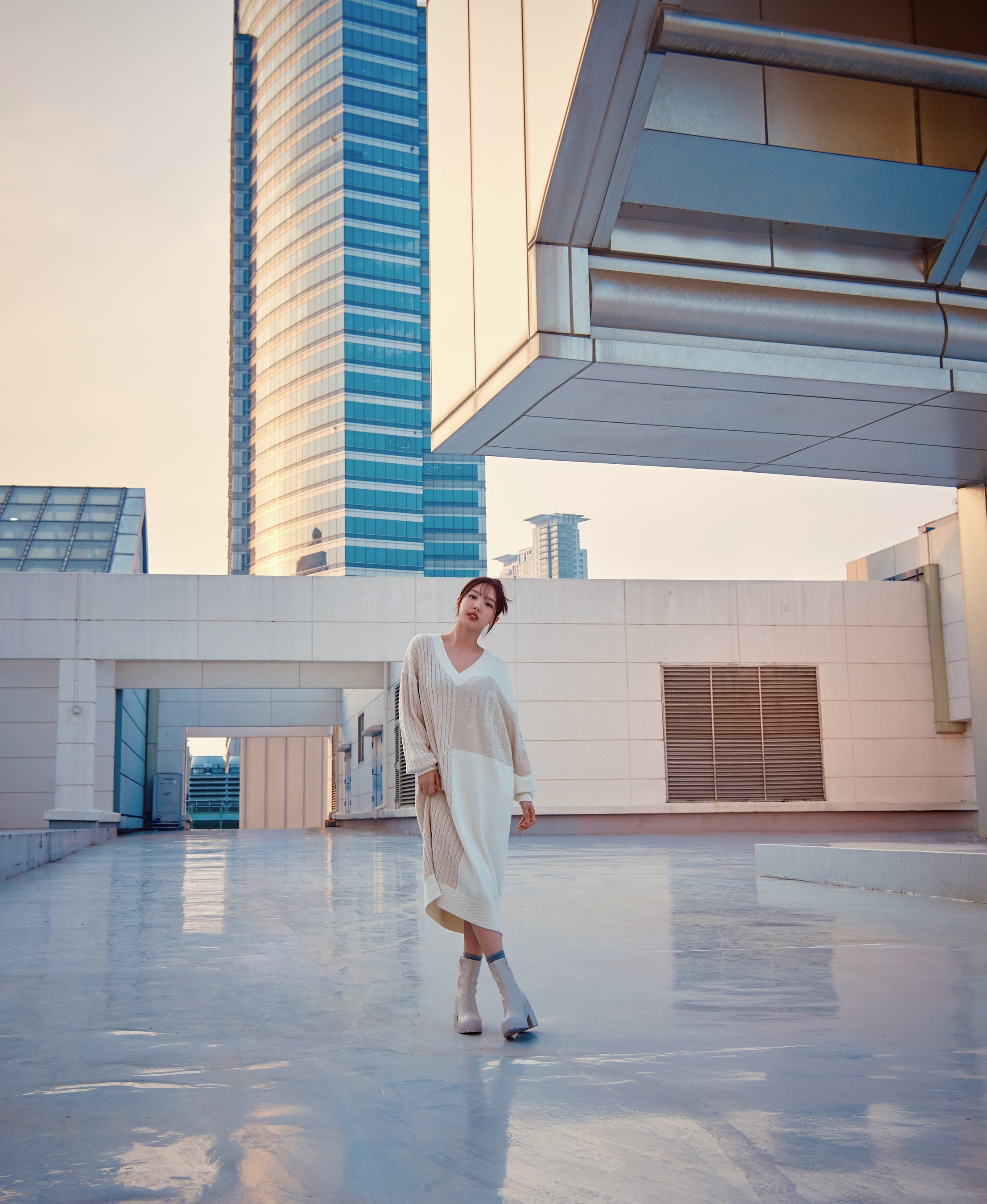 今回のキャンペーンでナヨンは、チェックのオーバーシャツとプリーツのミニスカートの上にスリムなデニムジャケットを羽織ったり、ケーブルセーターにソフィージーンズを合わせたシンプルなスタイリング、2トーンのケーブルVネックニットドレスを一枚で着こなすルックが登場します。