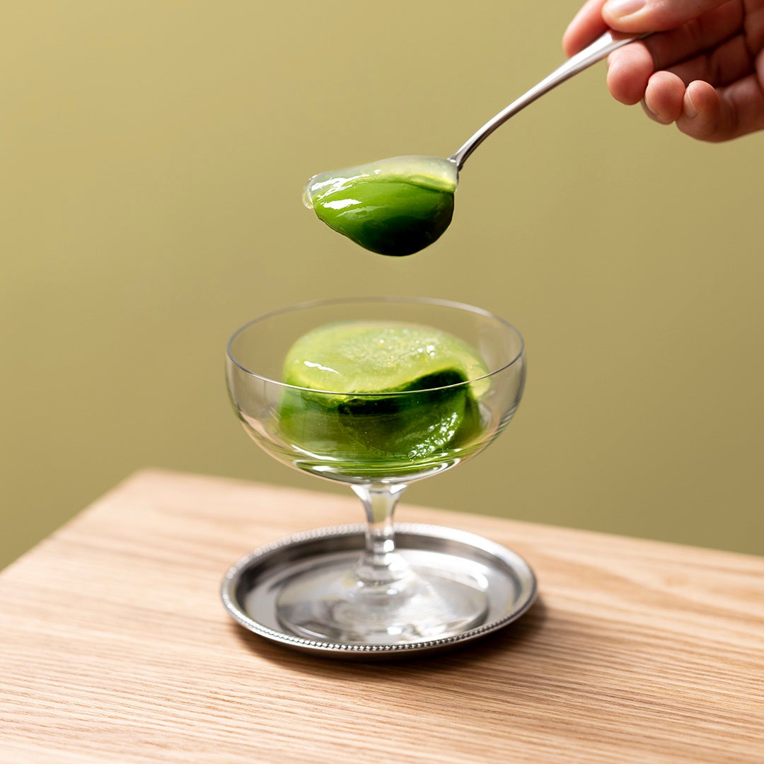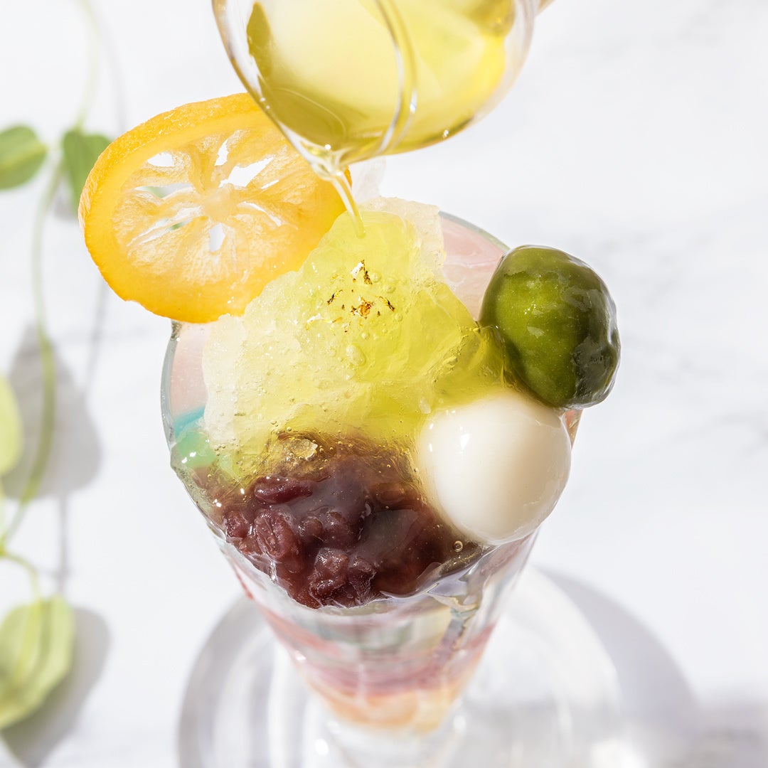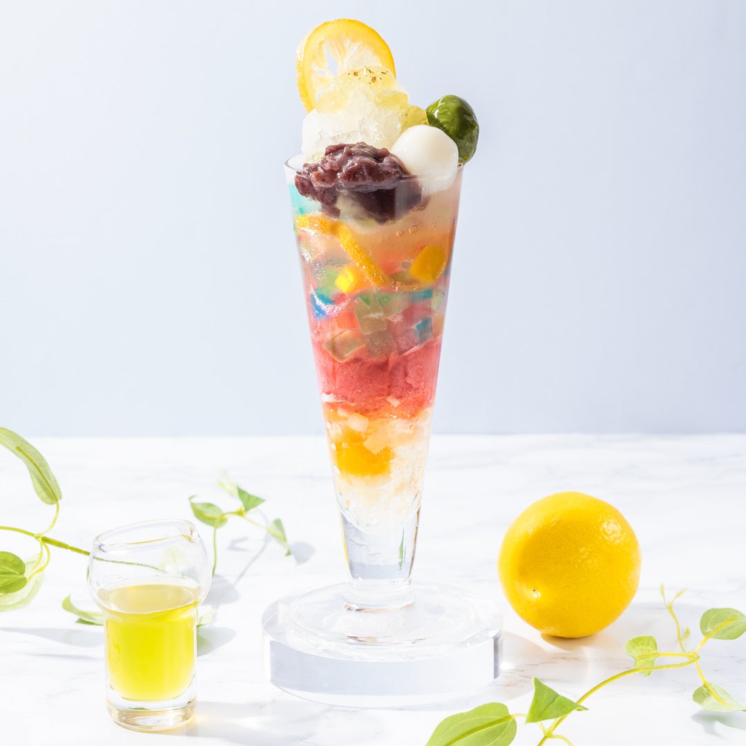 なかでもイチオシは、大丸東京店で8月末までご提供している、夏らしい色鮮やかな琥珀糖をあしらった「琥珀パフェ」。桃やレモン、青りんごなどの琥珀糖に、すだちシャーベットともちもちの白玉をあしらい、深蒸し煎茶みつをたっぷりかけていただく「琥珀パフェ」は、食べ進めるごとに、しゅわしゅわと弾ける炭酸水、華やかなフランボワーズシャーベットの酸味、レモンジュレなどのアクセントがきく逸品です。その他にも、オリジナルの抹茶ぷりんを中に忍ばせた「さわやか抹茶ぷりん氷 瀬戸内レモン」は、たっぷりかかった抹茶蜜のかき氷とレモンの爽やかさ、抹茶ぷりんとの食感の違いを楽しめる “進化系かき氷”として誕生。さらに、その抹茶ぷりんは、公式オンラインショップでお取り寄せできるので、夏のギフトにもお薦めです。
