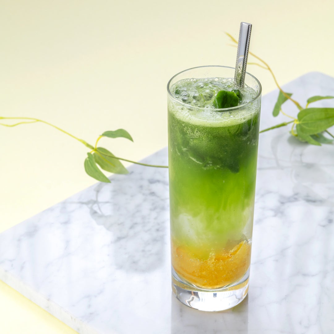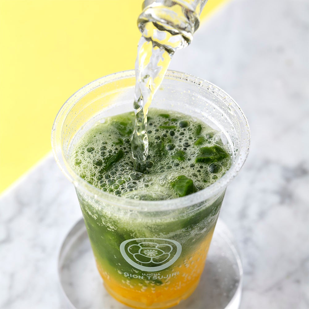 抹茶をそのまま閉じ込めた「抹茶氷」を炭酸水で割り、果肉たっぷりのゆずシロップで爽快感と大人な甘さがひろがる夏季限定ドリンク。