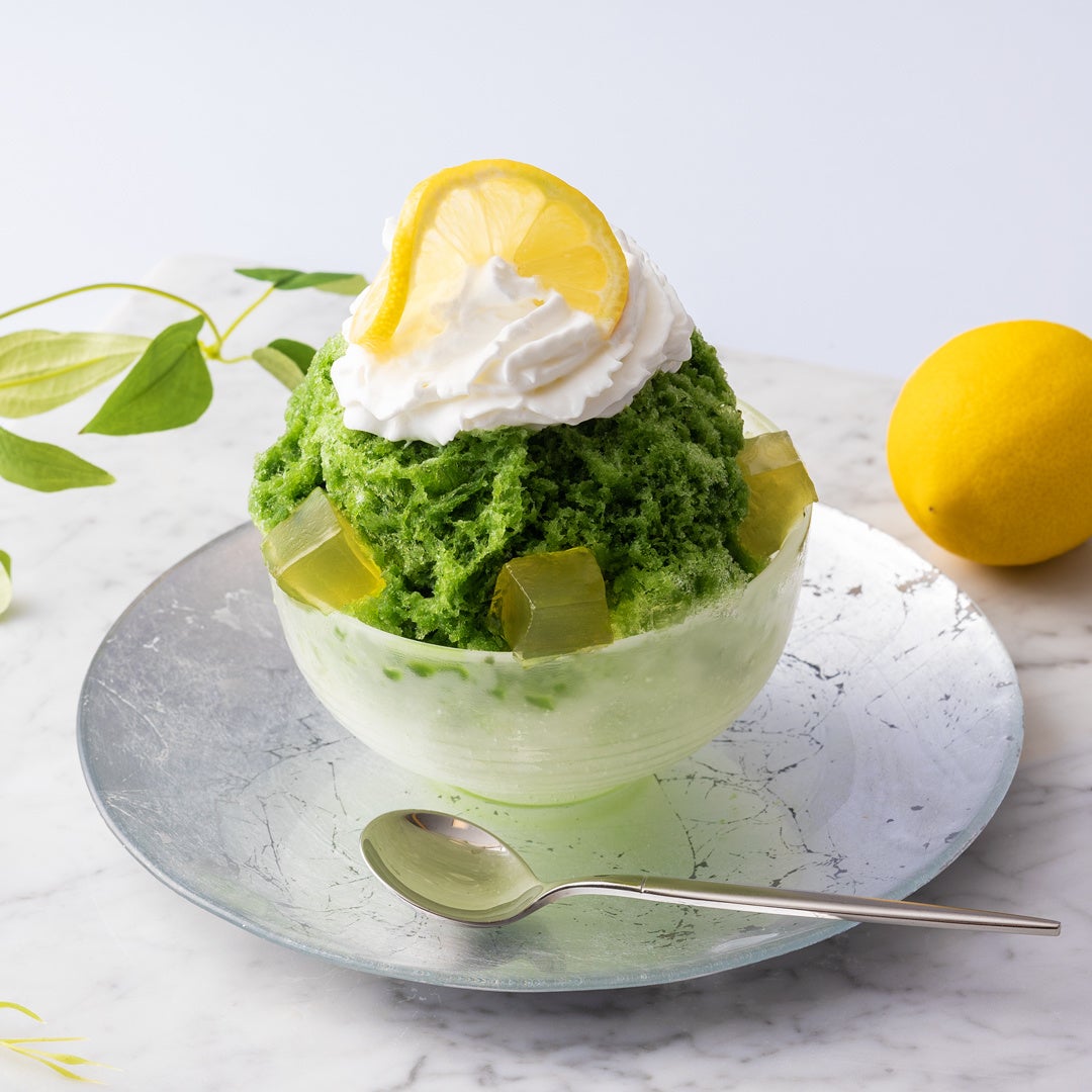初登場!たっぷりかかった抹茶蜜のかき氷とレモンの爽やかさ、レモンエスプーマがさっぱりクリーミーなかき氷メニュー。