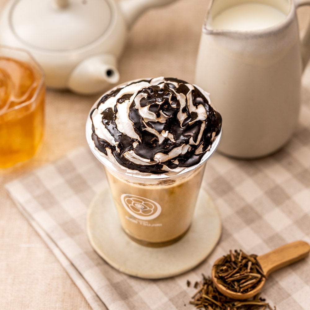 炎天下の続く灼熱の夏、少しでも宇治茶で涼をお楽しみいただきたいと、様々な宇治茶を使ったドリンクも展開しています。なかでも、祇園辻利京都駅八条口店限定の新商品「ほうじ茶みるくフラッペ」は、遠赤外線でじんわり焙煎したほうじ茶を使用しているので、芳醇な香りが特長。普段カフェオレを愛飲されている方にもお好みいただけるよう、クリーミーな中にほろ苦さとほどよい甘さが感じられシャリシャリしたフラッペが涼しい一品です。
