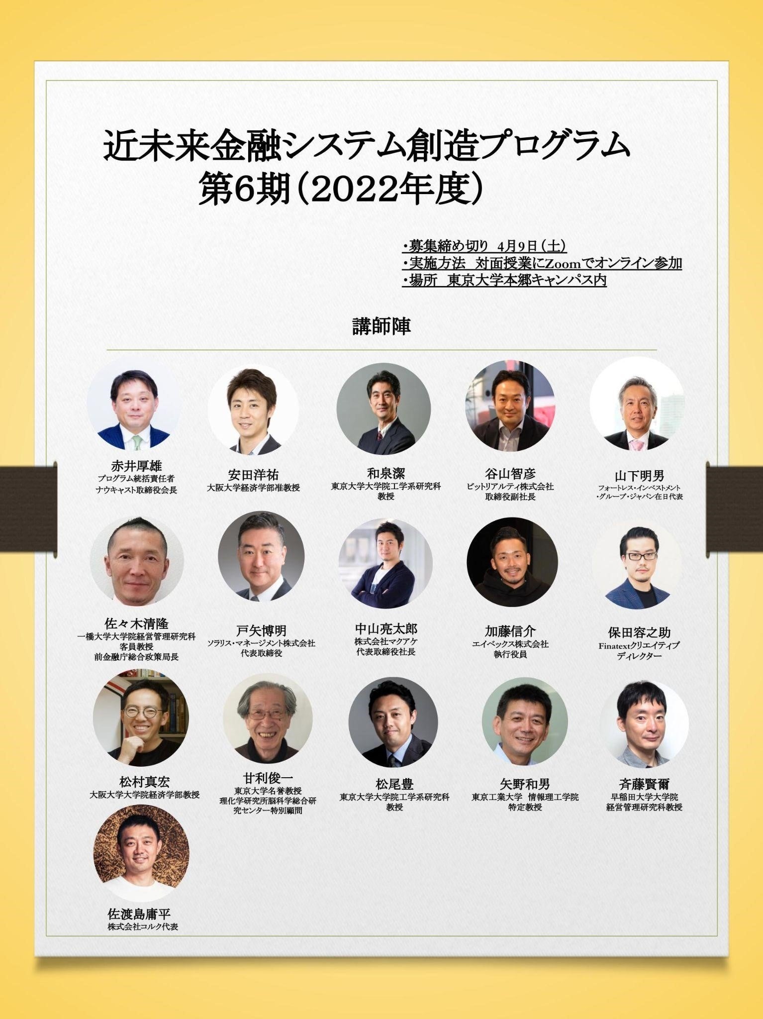 「近未来金融システム創造プログラム」、2022年度(第6期)開講決定!