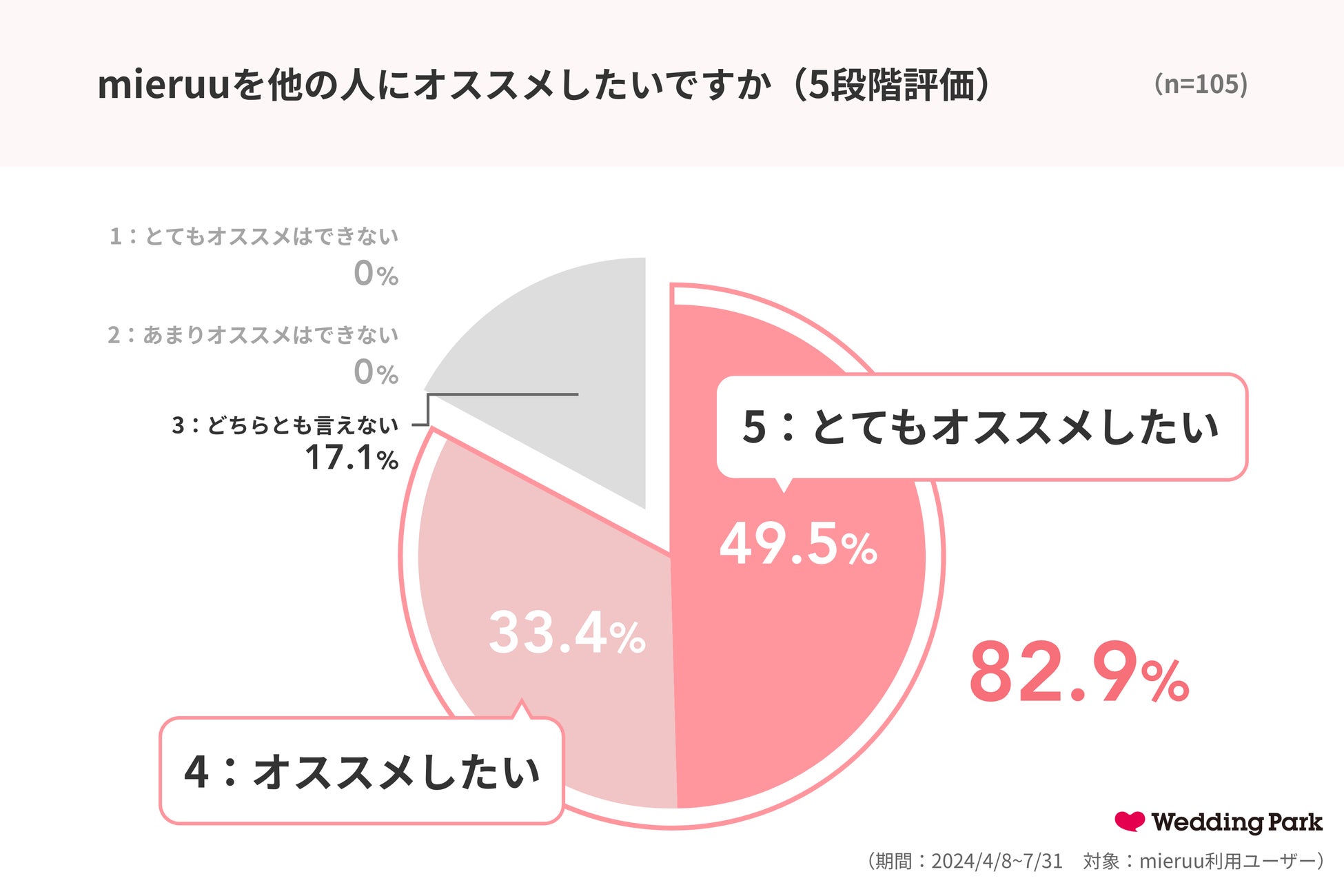 お客様アンケートでも、8割以上の人が「信頼度があがった」と感じており、mieruu導入が式場の信頼度へつながることがわかる結果となりました。