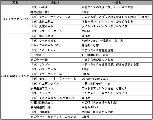 コンテストは新築戸建て住宅を対象とする“新築部門”と、リフォーム住宅を対象とする“リフォーム部門”の2部門で構成され、各部門ともに上位3作品を選出し、公開審査会によりグランプリ作品を決定したほか、地域性も踏まえた優秀な施工物件などを表彰しました。