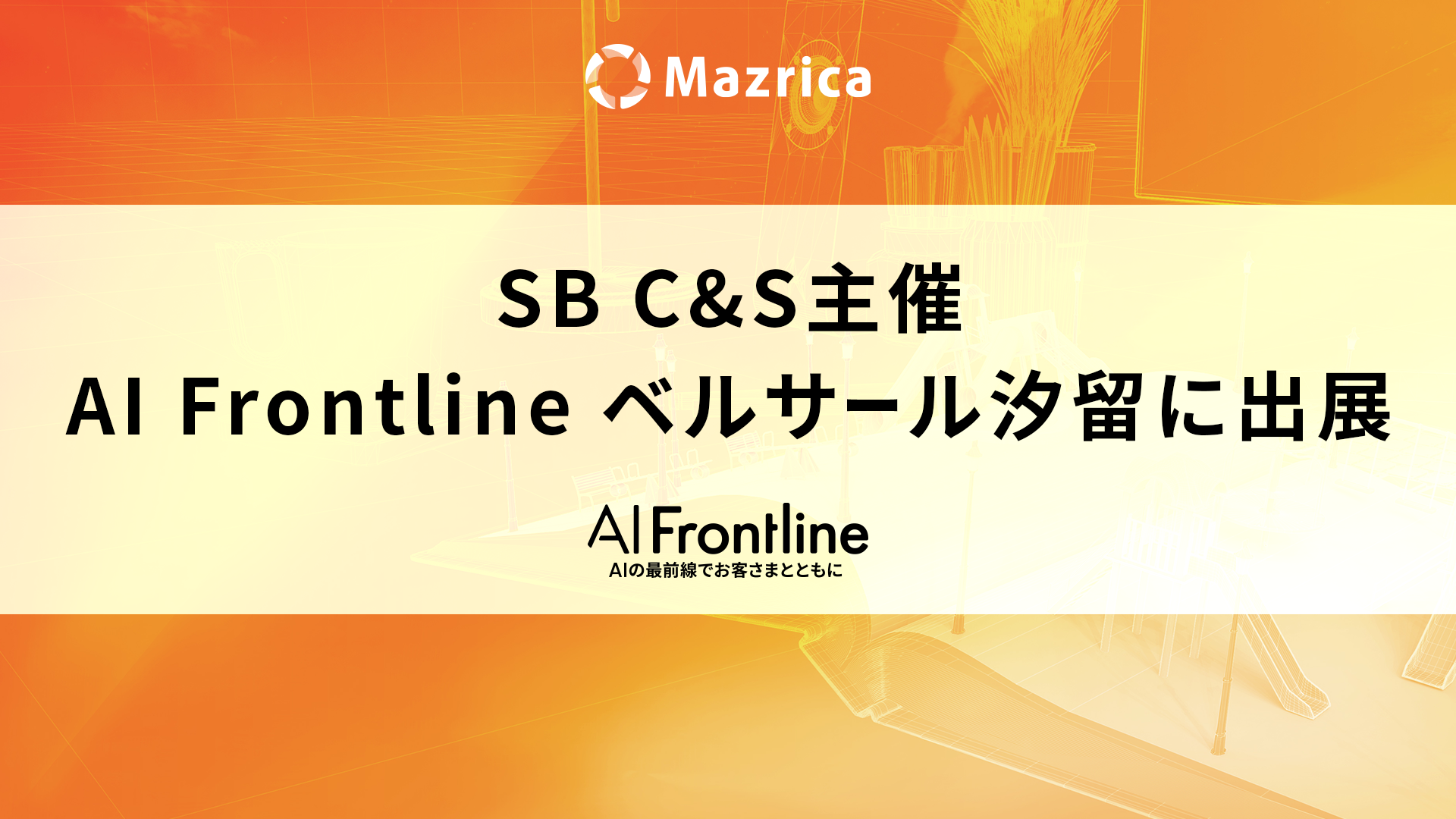 株式会社マツリカ(本社:東京都中央区、代表取締役CEO:黒佐英司、以下「当社」)3月12日(木)に開催される、SB C&S株式会社主催の最新AIソリューションを一堂に集めた展示・体験型イベント「AI Frontline」に出展いたします。当社は、営業特化型AI企業データベース「Mazrica Target」を展示し、企業の営業生産性向上と提案資料作成の高度化を支援する最新の活用事例をご紹介します。