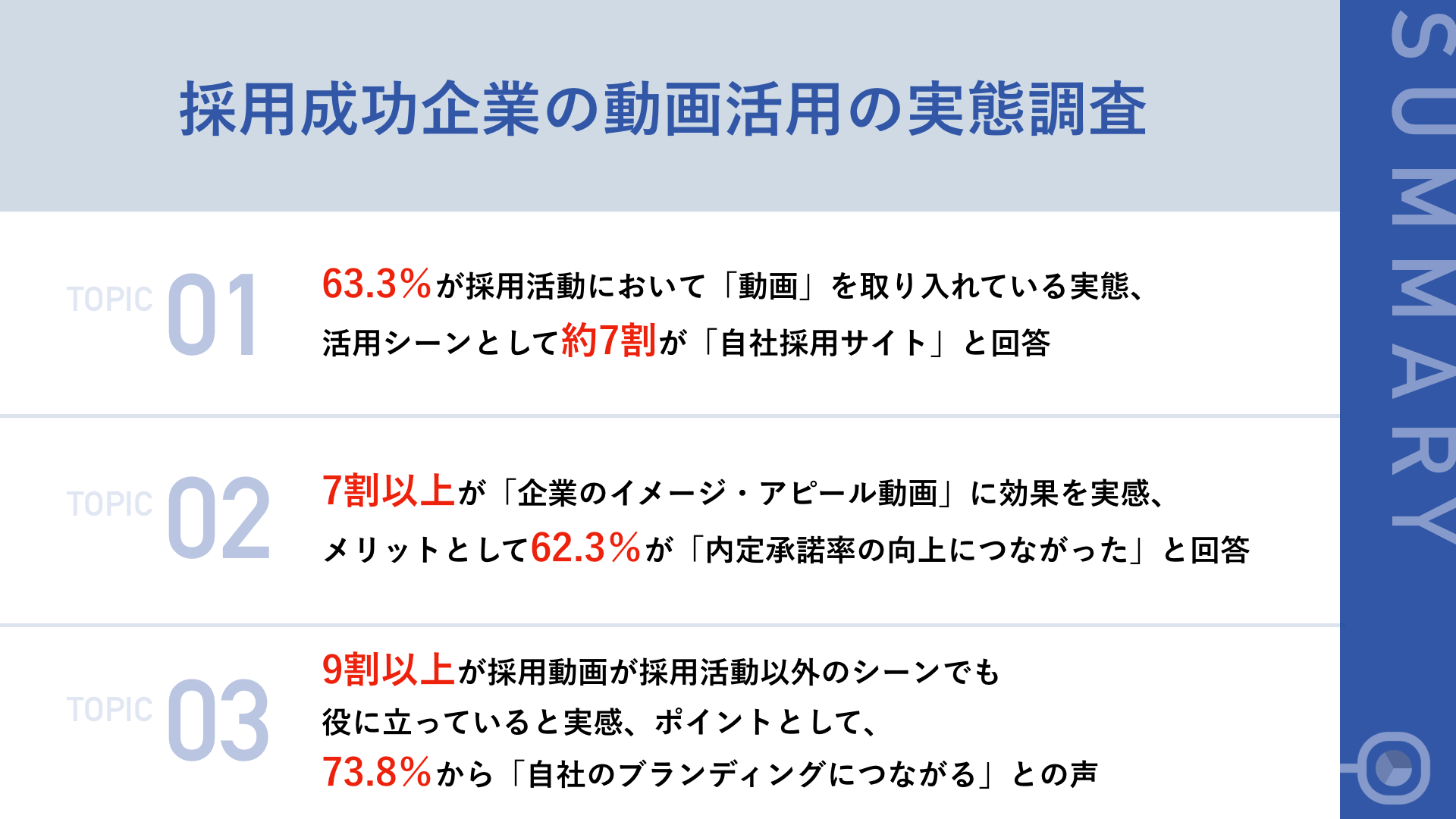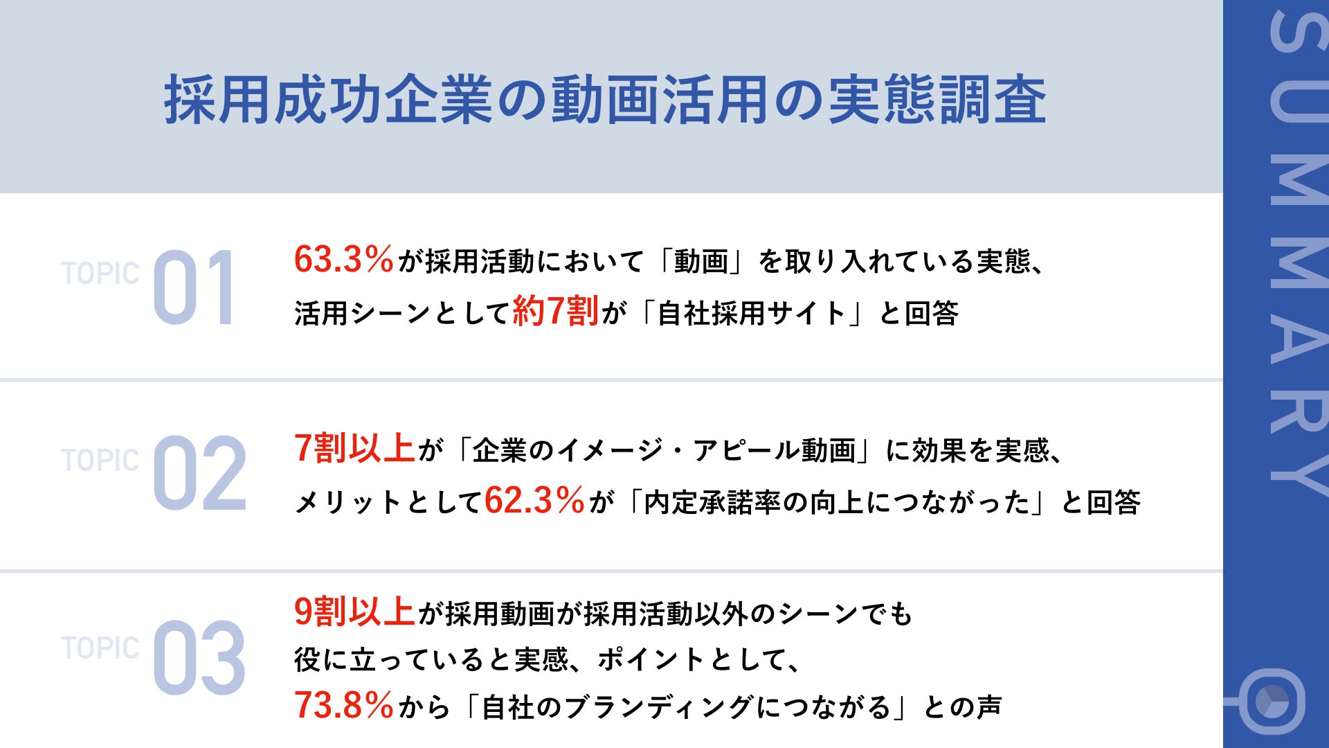 採用に成功している企業の63.3%が採用活動で「動画コンテンツ」を活用 62.3%が「内定承諾率の向上」を実感