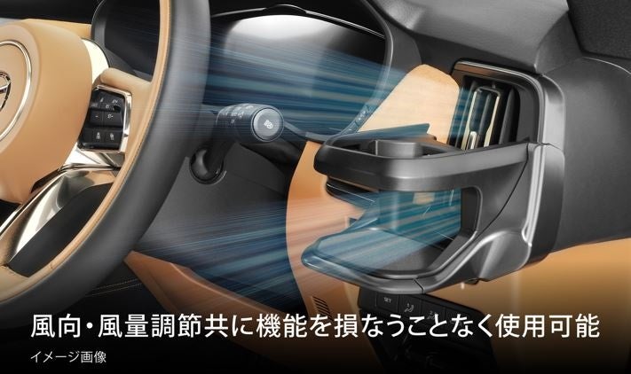 製品を取り付ける際エアコンフィンを使用しないため、ドリンクホルダーを取り付けた後も風向きの調節ができ風量調節ダイヤルも使用できます。また製品形状の工夫により、ドリンクホルダー装着後もできるだけ風を遮らない設計にしました。