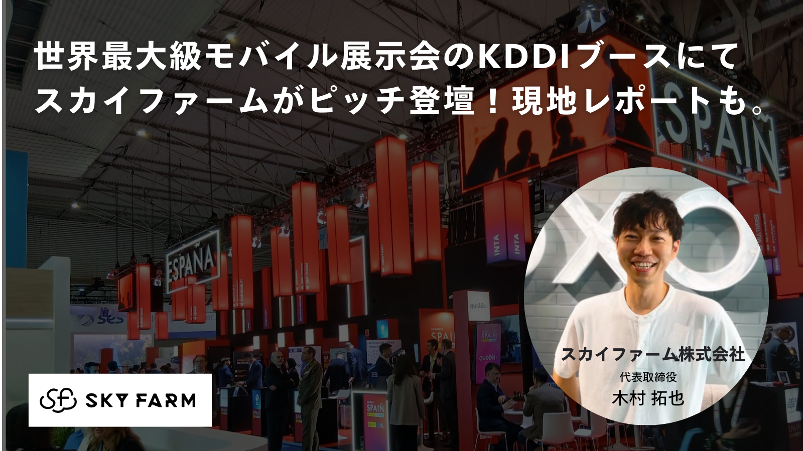 「MWC Barcelona」は、世界中の通信キャリアや端末メーカー、テクノロジー企業が集結する世界最大級のイベントです。今回スカイファームは、KDDI株式会社が「ネクストユニコーンの可能性を秘めたスタートアップ」として厳選した5社のうちの1社に選出され、バルセロナ現地への渡航および世界へ向けたプレゼンテーションを行う運びとなりました。