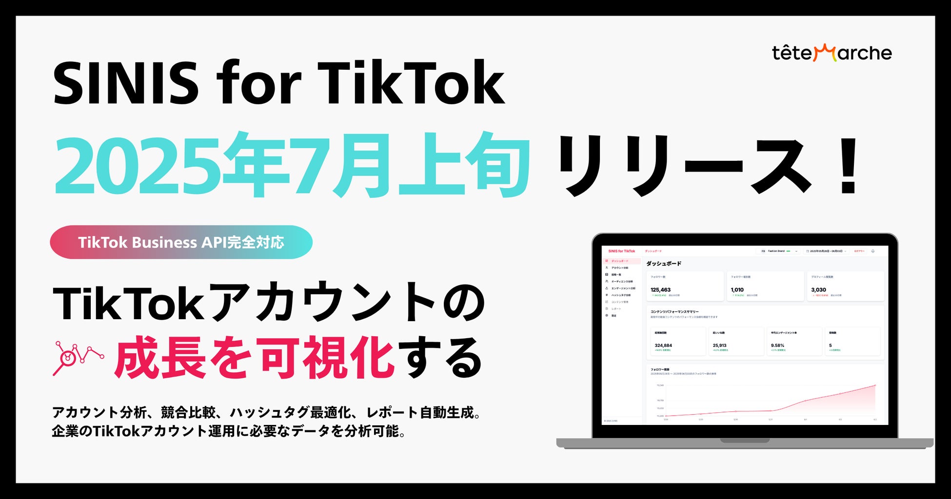 テテマーチ、TikTok分析ツール「SINIS for TikTok」2025年7月にリリース予定