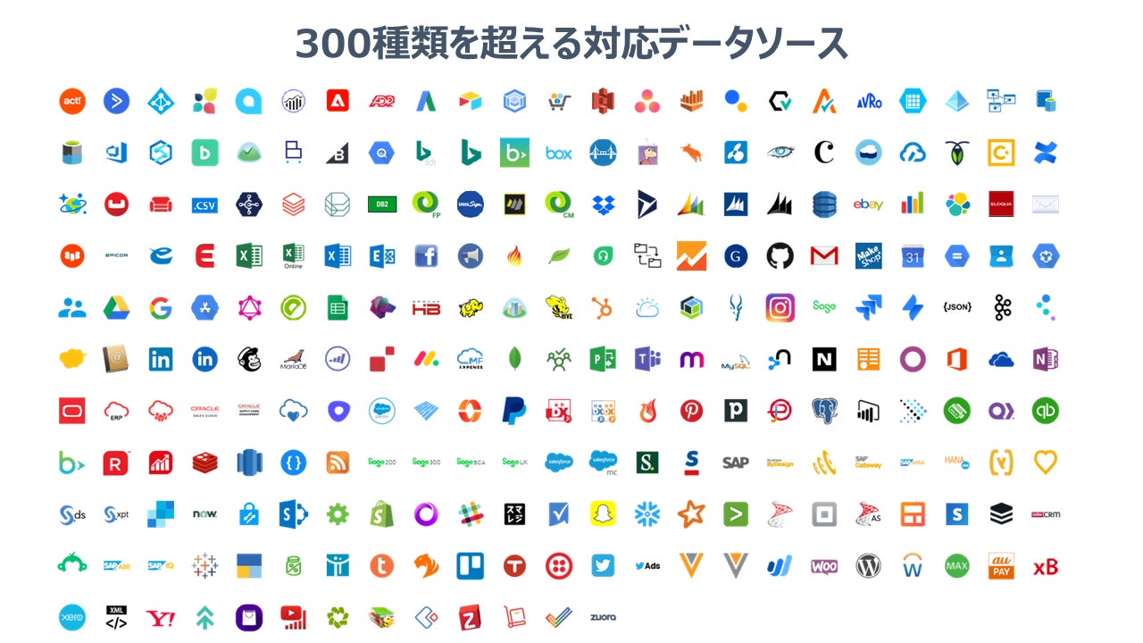 CData Sync Cloud は、Salesforce やGoogle といった企業にOEM として組み込まれている実績のあるCData のデータ連携ドライバーをベースに構築されています。300種類を超えるSaaS・クラウドDB とのコネクタが提供されており、日本の国産サービスであるkintone、Sansan、スマレジ、Yahoo!広告などにも対応しています。