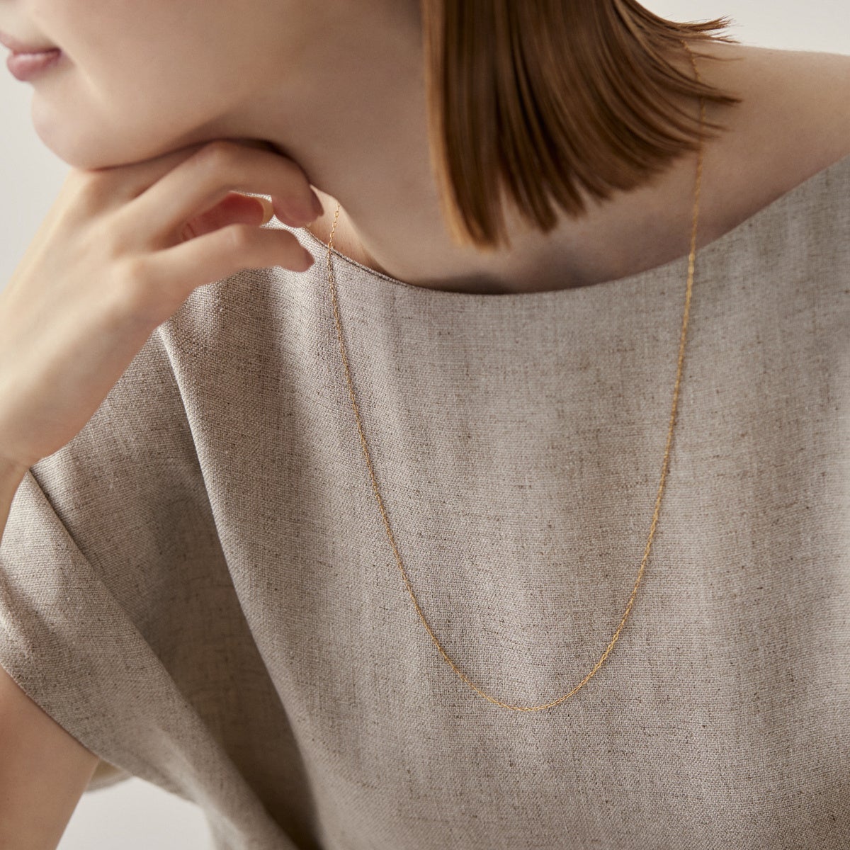 フリーアジャスターのチェーンネックレスは、その日その日のコーディネートに合わせて様々な表情にアレンジいただけます。さらっと身につけられるシンプルなデザインなので、レイヤードジュエリーとしても活躍し、コーディネートの幅が広がるアイテム。