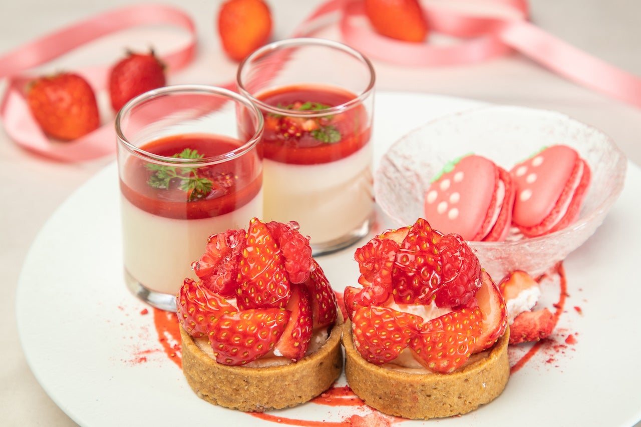 | 〈スイーツ〉 ・いちごマカロン ・練乳のパンナコッタ ・いちごのタルト ・オペラ ・ロールケーキ ・チョコテリーヌ ・スコーン2種(プレーン/ベリー) マスカルポーネクリーム&ベリーソース付 ※おかわり自由 〈フード〉 ・スライダー テリヤキチキン ・紅富士サーモンのカナッペ 〈ドリンク〉 ・紅茶各種(アールグレイ、グリーンドラゴン、カモミールシトラス(ノンカフェイン) アフリカンネクター(ノンカフェイン)、デトックスインフュージョン(ノンカフェイン) セイロン、オーガニックジンジャーピーチ(アイスのみ) ・コーヒー各種(ホットコーヒー/アイスコーヒー/ホットカフェオレ/アイスカフェオレ/デカフェコーヒー) ※仕入れ状況により食材の変更がある可能性がございます。予めご了承ください。 ※紅茶以外にもコーヒー・カフェラテをご用意可能です。 |
