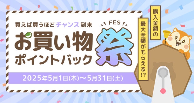 株式会社セレス(本社:東京都渋谷区、代表取締役社長:都木 聡、証券コード:3696、以下セレス)は、当社が運営するポイントサイト「モッピー」において、2025年5月1日(木)から5月31日(土)までの期間限定で、抽選で購入金額の最大100%分のポイントが還元されるキャンペーン「お買い物ポイントバック祭(フェス)」を開催いたします。