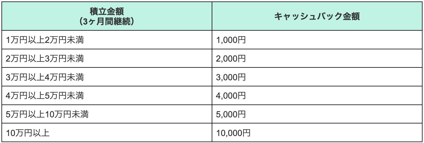 ・2ヶ月目もしくは3ヶ月目に積立金額を前月よりも増額もしくは減額された場合、最も積立金額が低かった月の積立金額および増額金額をキャンペーンの対象とします。場合によっては賞品付与の対象外となりますのでご注意ください