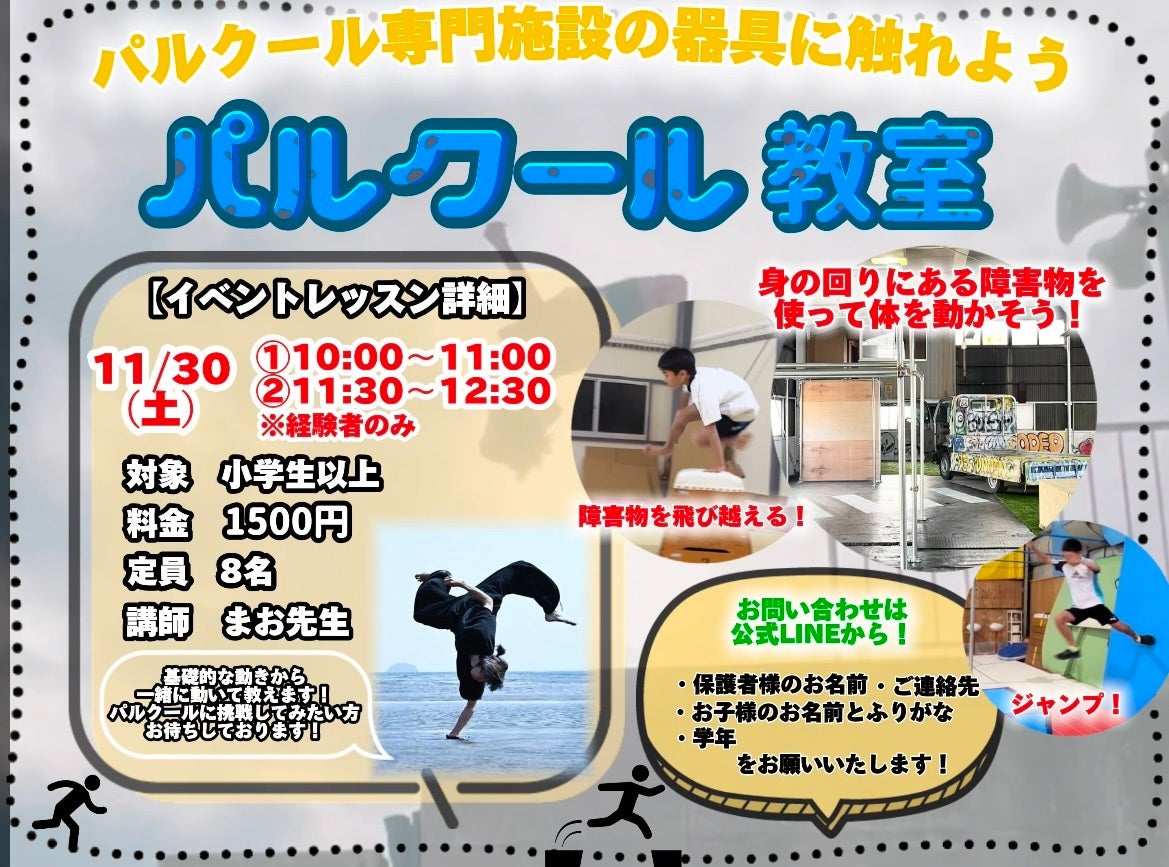 【姫路】パルクール専門施設・11月30日(土) パルクール教室を開催!