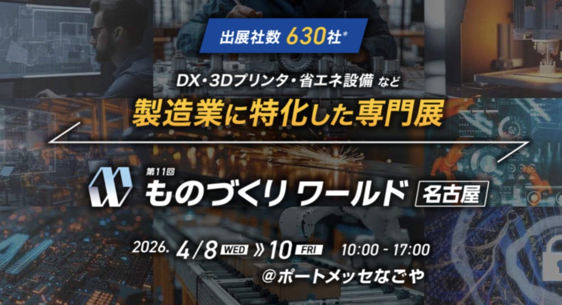 株式会社スカイディスク(本社:福岡県福岡市中央区、代表取締役CEO:内村 安里、以下「スカイディスク」)は、2026年4月8日(水)〜10日(金)にポートメッセなごや(愛知県名古屋市港区)で開催される「第11回 ものづくりワールド 名古屋」に出展いたします。