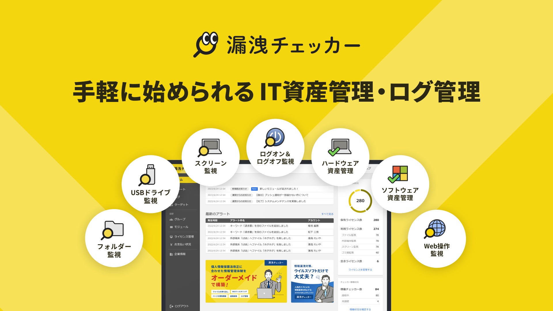 中小企業が利用しやすいIT資産管理・操作ログ管理ツール「漏洩チェッカー」は、シンプルで使いやすく、担当者の運用負担を減らすソリューションとして、本展示会へ出展します。ブースでは、「漏洩チェッカー」の機能や使い方をご案内する他、中小企業や小規模企業における詳細な活用事例とその導入効果をご紹介いたします。