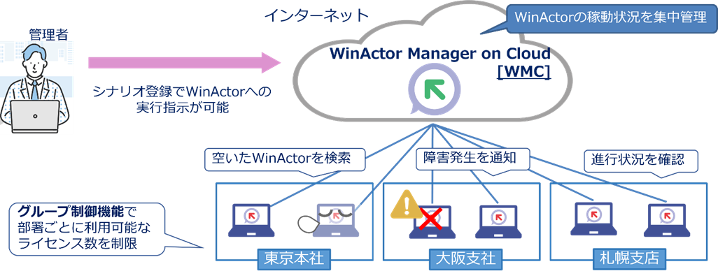 WMCとは複数のWinActorを集中管理するためのクラウドサービスです。