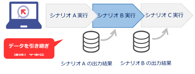 シナリオの実行結果を次のシナリオに入力するなど、複数のシナリオを連結して実行できます。