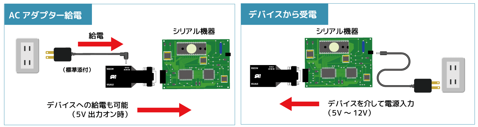 ACアダプター使用時、D-SUB9番ピンを介して外部デバイスへ供給可能(5V)